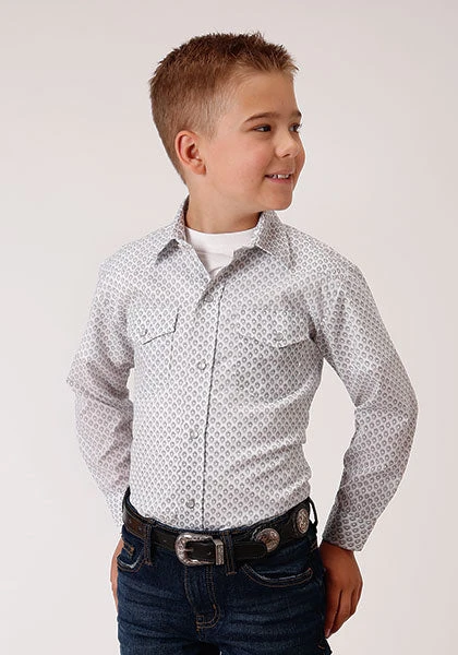 White, Black and Grey Teardrop Print Long Sleeve Snap Front Shirt.