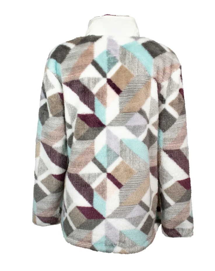 Cream and Multi-Color Print Fleece Pullover.