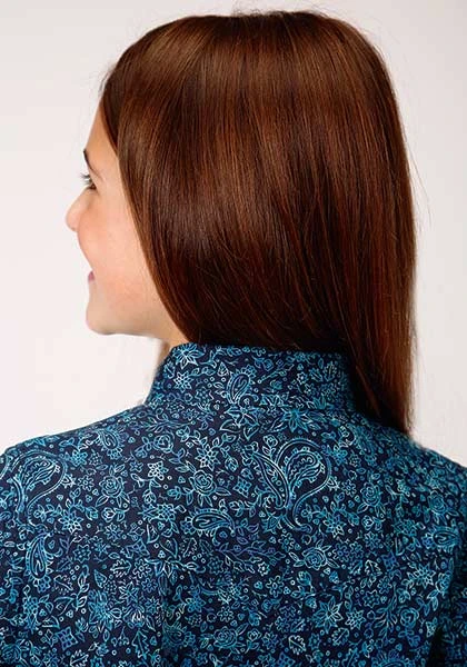 Blue Water Paisley Print Long Sleeve Snap Front Shirt.