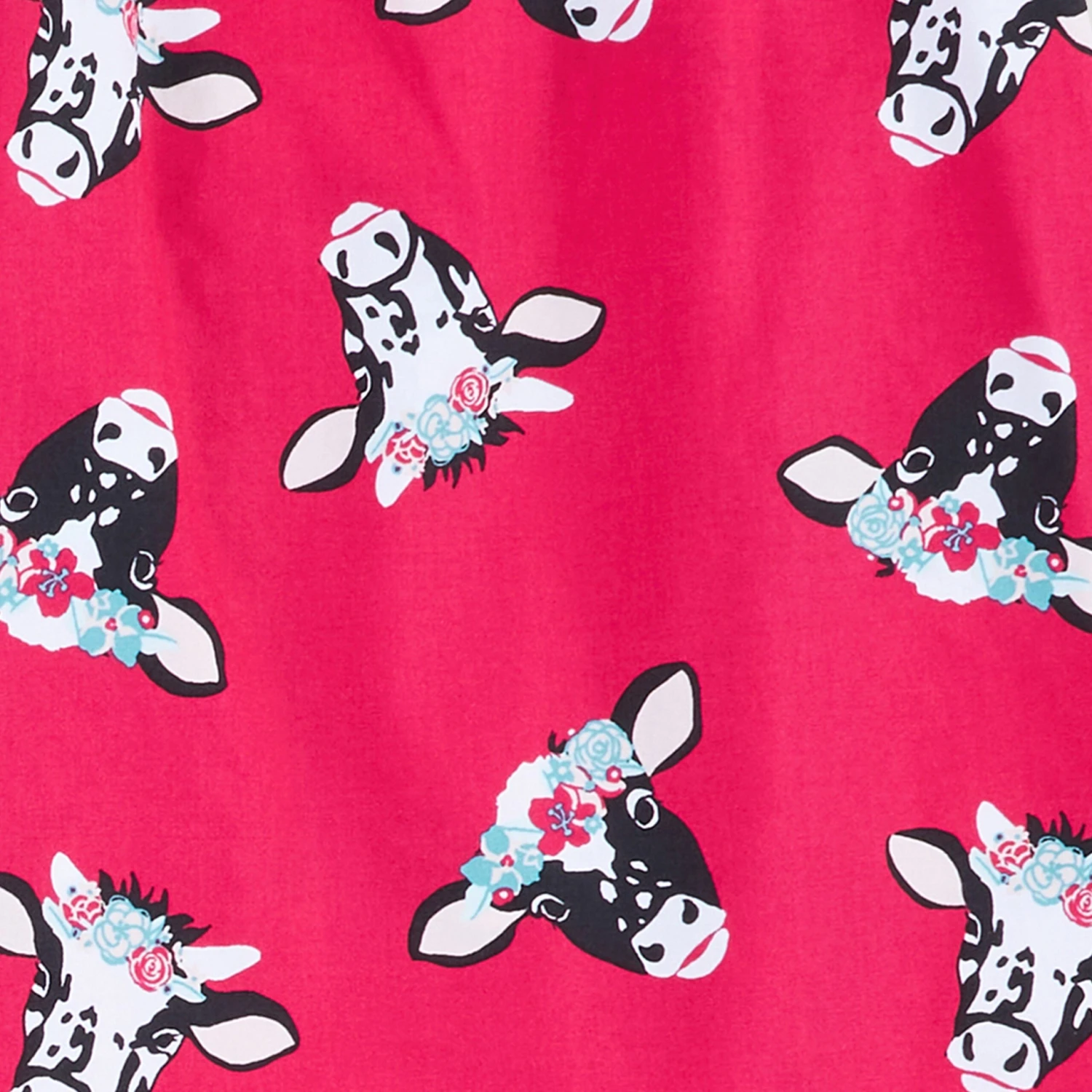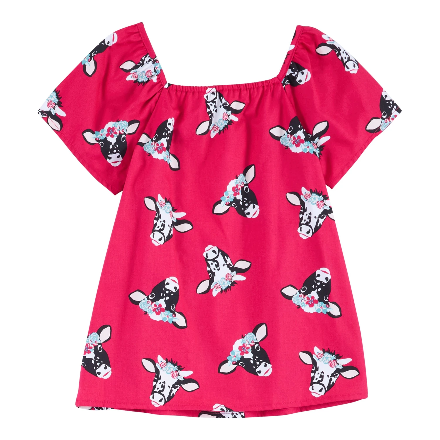 Red Short Sleeve Blouse with Flower Crown Cow Print.